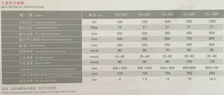型號(hào):YC-25T/50T/63T/100T
